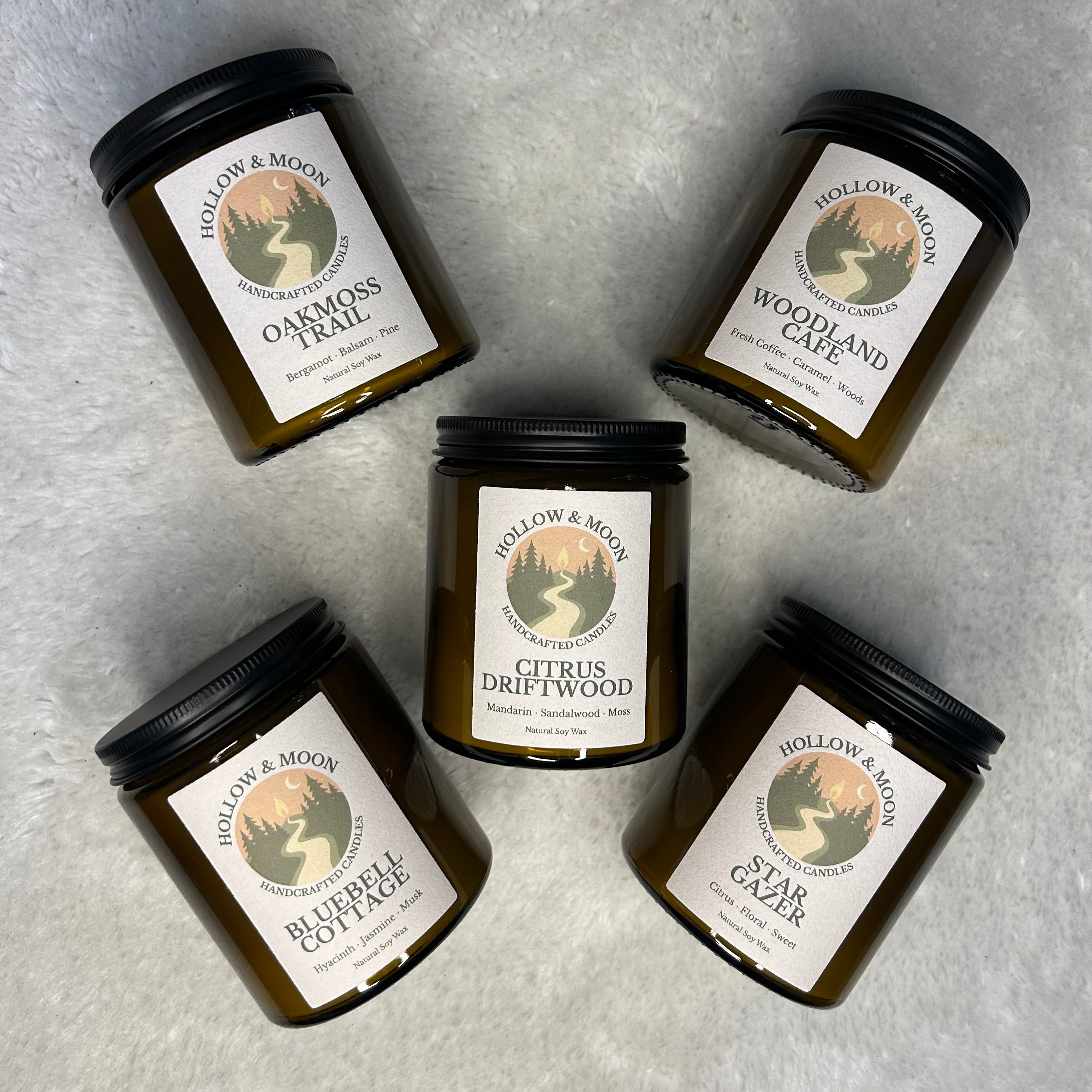 Hollow and Moon was born from a love of woodlands, nature, and all things cosy. I’m an autumn and winter kind of girl, and that love for the colder, slower seasons inspires everything I create. Each scent is carefully crafted to evoke the feeling of walking through a forest, curling up on a cosy rainy day, or simply being wrapped in nature’s quiet magic.